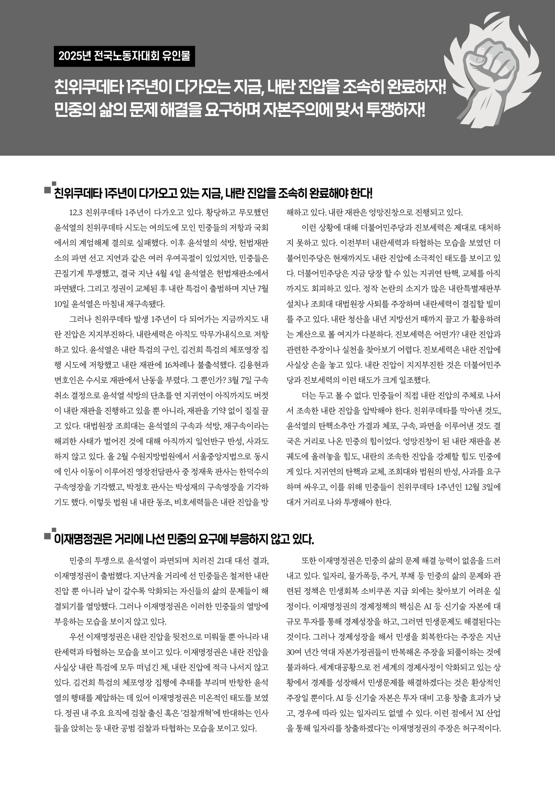 – 민중의 힘으로 조속히 내란 진압을 완료하자!