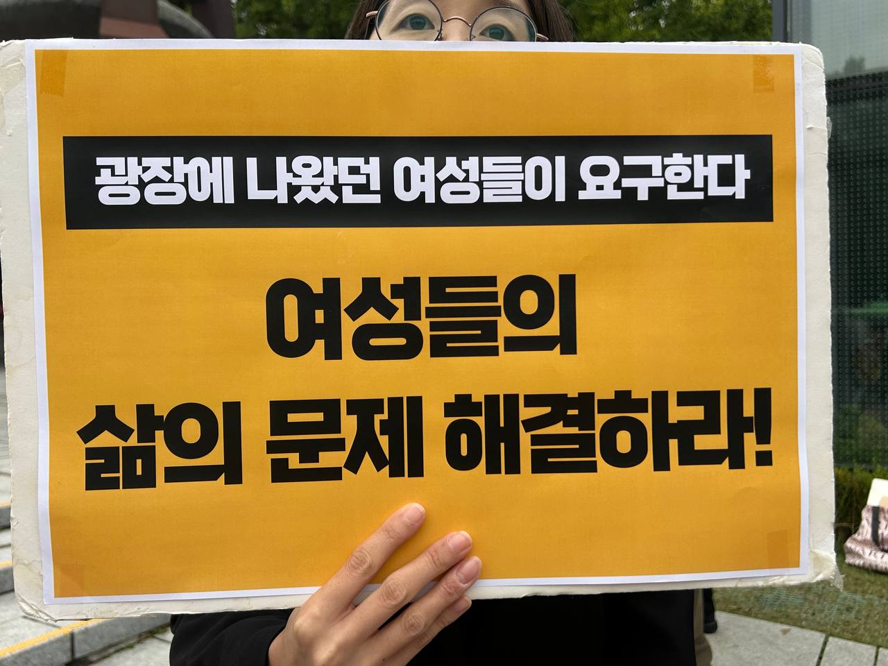 마무리 발언. “이제는 정말 여성들이 우리 삶을 우리 힘으로 직접 바꿀 일만 남았다고 생각합니다. 그리고 그 투쟁은 여성억압을 완전히 끝장내기 위한 자본주의에 맞선 투쟁, 사회주의 여성해방 투쟁이 되어야 한다고 생각합니다.”―사회주의정당건설연대 여성해방운동형성사업팀 조분이 팀원