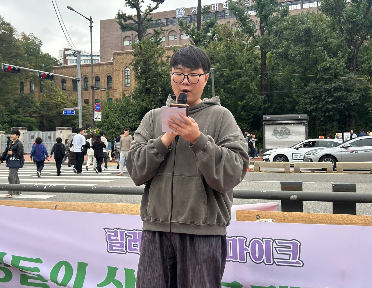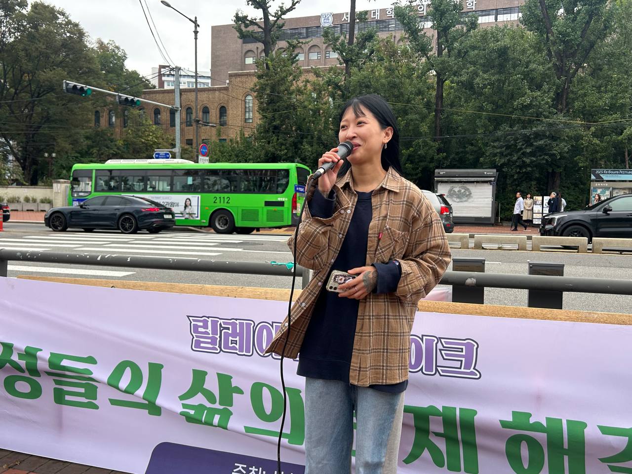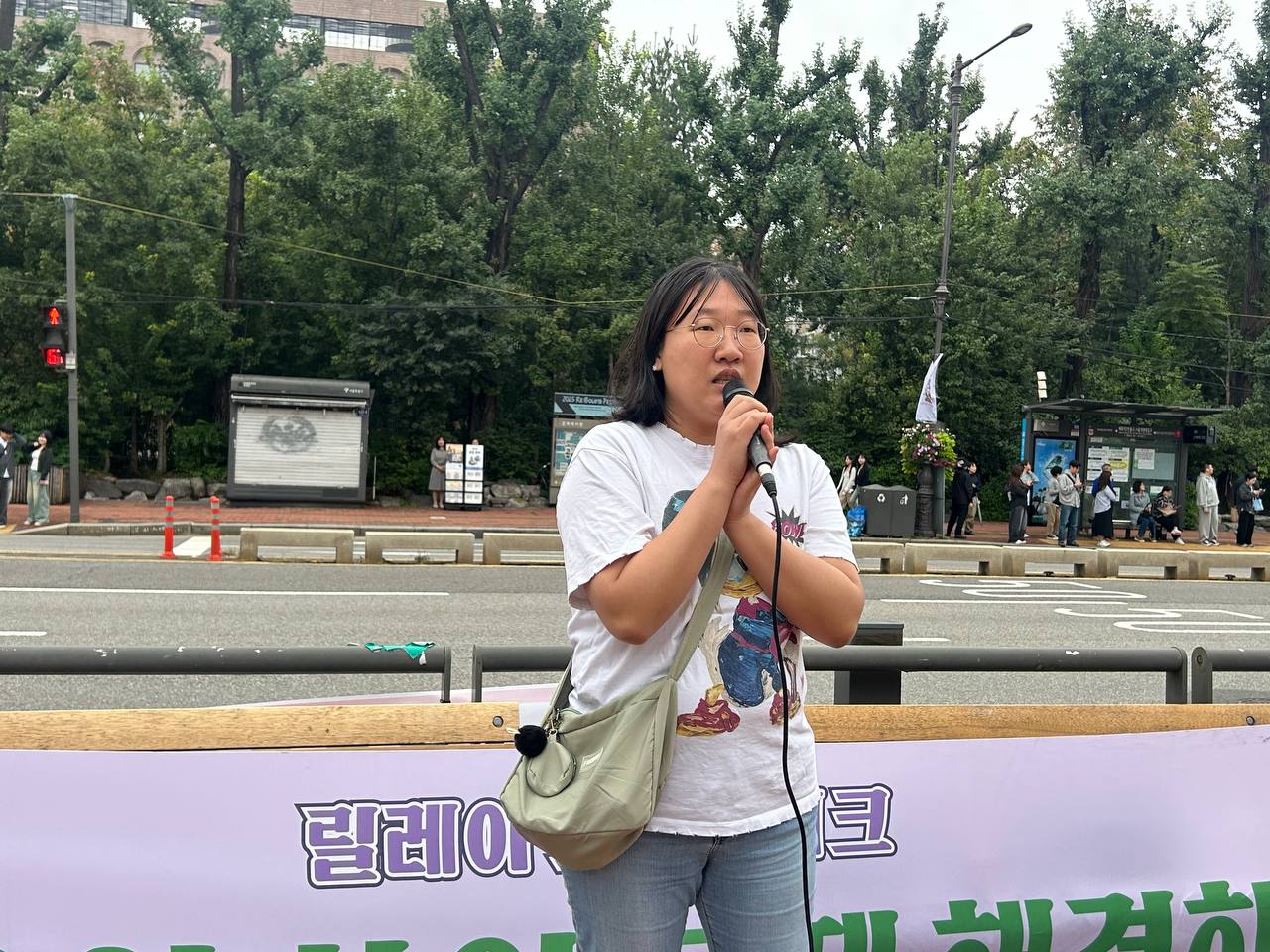 세 번째 발언. “여성 혐오적인 범죄, 뉴스에서 보고 싶지 않아요. … ‘이렇게 하면 조금 예방이 된다더라’라는 얘기도 듣고 싶지 않아요.”―대학생 박수정 동지